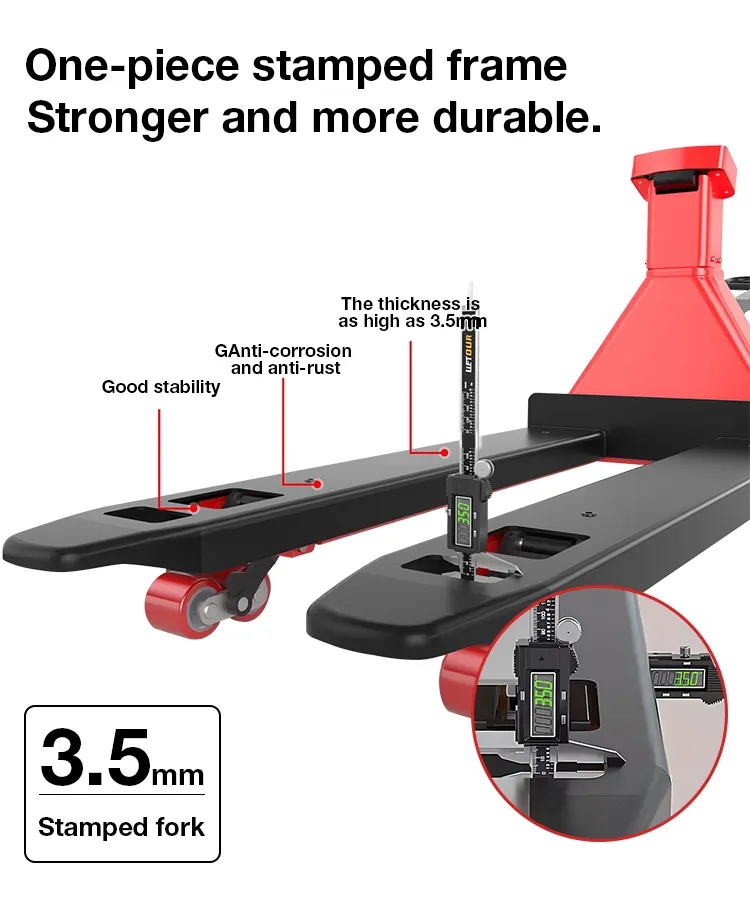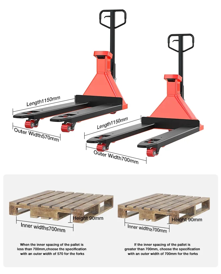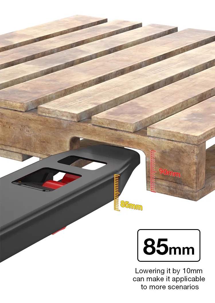 Upgraded with scale, the scale on the fork can be used to quickly determine whether the fork exceeds the pallet, avoid repeated pressure tests, and improve efficiency.