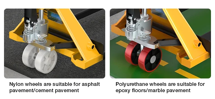 Nylon wheels are suitable for asphalt pavement/cement pavement, and polyurethane wheels are suitable for epoxy floor/marble pavement.